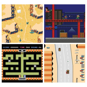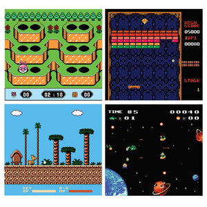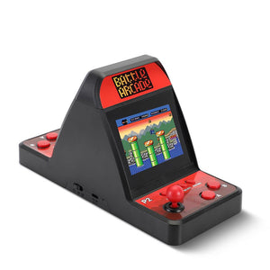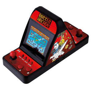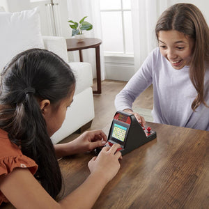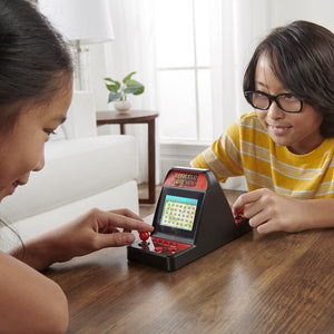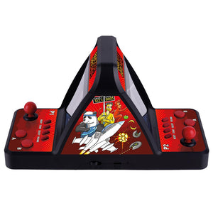 This is the tabletop arcade game that pits two opponents in a face-off battle. Each player is armed with full size buttons and a joystick as the 2D action is displayed on an integrated 3" color LCD screen. It features 300 games (101 two-player games) featuring side-scrolling, maze-running, and strategy-based gameplay similar to the classic 8-bit video games of the 80s and 90s. Powered via USB plug or four AA batteries (required). Ages 8 and up. 8 1/2" H x 5" W x 3 3/4" D. (12 oz.)