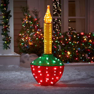 Only available from Hammacher Schlemmer, this is the illuminated outdoor decoration inspired by traditional holiday bubble lights. Made from iron with cotton thread, the weatherproof decoration stands aglow with 115 twinkling red, green and white LEDs. A glittering net fabric adds depth to the decoration, and it secures to the ground with two metal lawn stakes. AC plug with 60"-long cord. 50" H x 20 1/2" Diam. (4 lbs.)