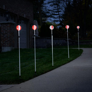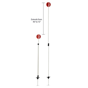 These are the adjustable driveway markers that help protect your vehicle, house, mailbox, and garage from accidental bumps. Each unit stakes into the ground and has a pair of reflectors on its top, providing visibility from any direction. The driveway markers have a fiberglass shaft that adjusts from 46' to 72', making them ideal for any driveway length, width, or land pitch. Includes two units.