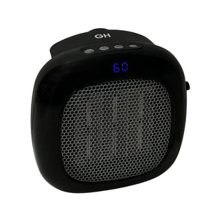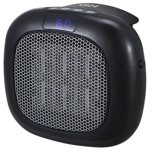 Available only from Hammacher Schlemmer, this is the compact space heater that plugs into a wall outlet and heats a small room with double the power of similar units. Ideal for workspaces and reading nooks, it sits flush up against a wall without occupying any floor space. It has a digital display and timer that can be set to turn the heater off automatically. Includes a remote control. Not for use in bathrooms. Black or White. 7 3/4" L x 5" W x 4 2/3" D. (7 oz.)