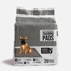 This is the pack of 25 potty pads for The Messless Indoor Dog Potty. Each bamboo charcoal pads gives off an organic scent that attracts dogs. They also neutralize odors, have no slide adhesives, and a leak-proof backing.