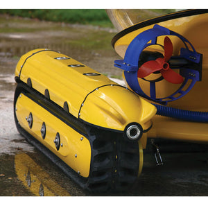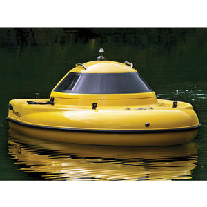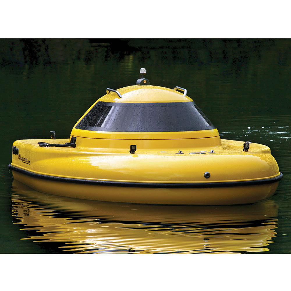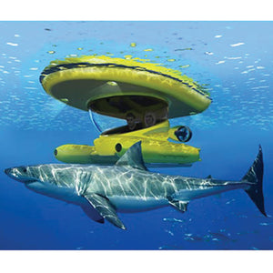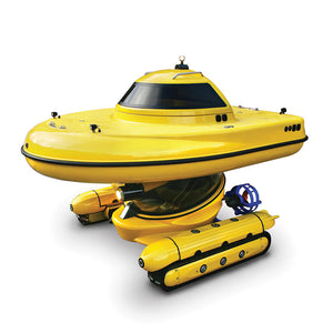 This is the partially submersible watercraft that provides above- and underwater viewing options, driving right off a trailer and into the water without the need for a crane, tender vessel, or dock. Ideal for exploring underwater environments without the need for a fully submersible craft, this one is composed of a buoyant above-water upper hull and two-person cockpit that provides 180º surface views and an inverted 1 1/2”-thick acrylic hemisphere below that provides two additional passengers underwater views. The upper cockpit houses controls for two horizontally oriented underwater thrusters that provide up to 6 knots forward/4 knots backward movement as well as 360º turns. While on land, each of the craft’s ground track systems are driven by dedicated 48-volt intercooled electric motors, enabling their heavy-duty rubber tracks to negotiate up to 30º gradients for convenient ocean-, lake-, or boat ramp-based water entry and egress. The tracks enable 360º axis turns, ideal for precise maneuvering. Two 24-volt lithium battery banks provide 110 hours of water operation (up to 8 hours on land) before requiring a recharge using the included AC adapter. Consult local ordinances for road legal use. 12' L x 8' W x 8' H. (3,400 lbs.)