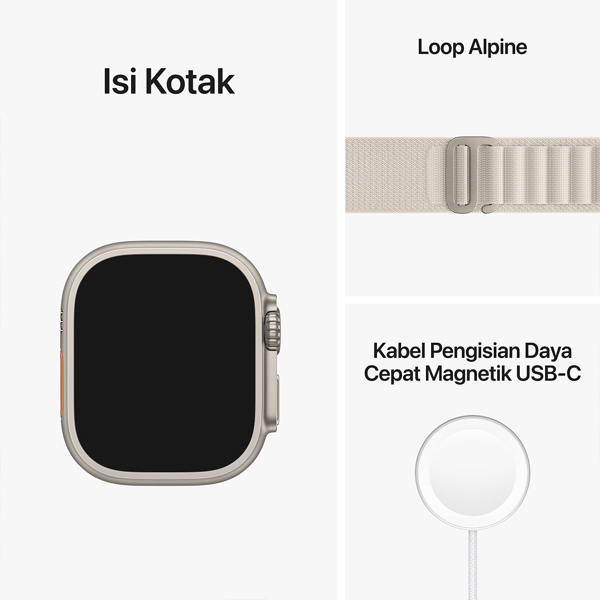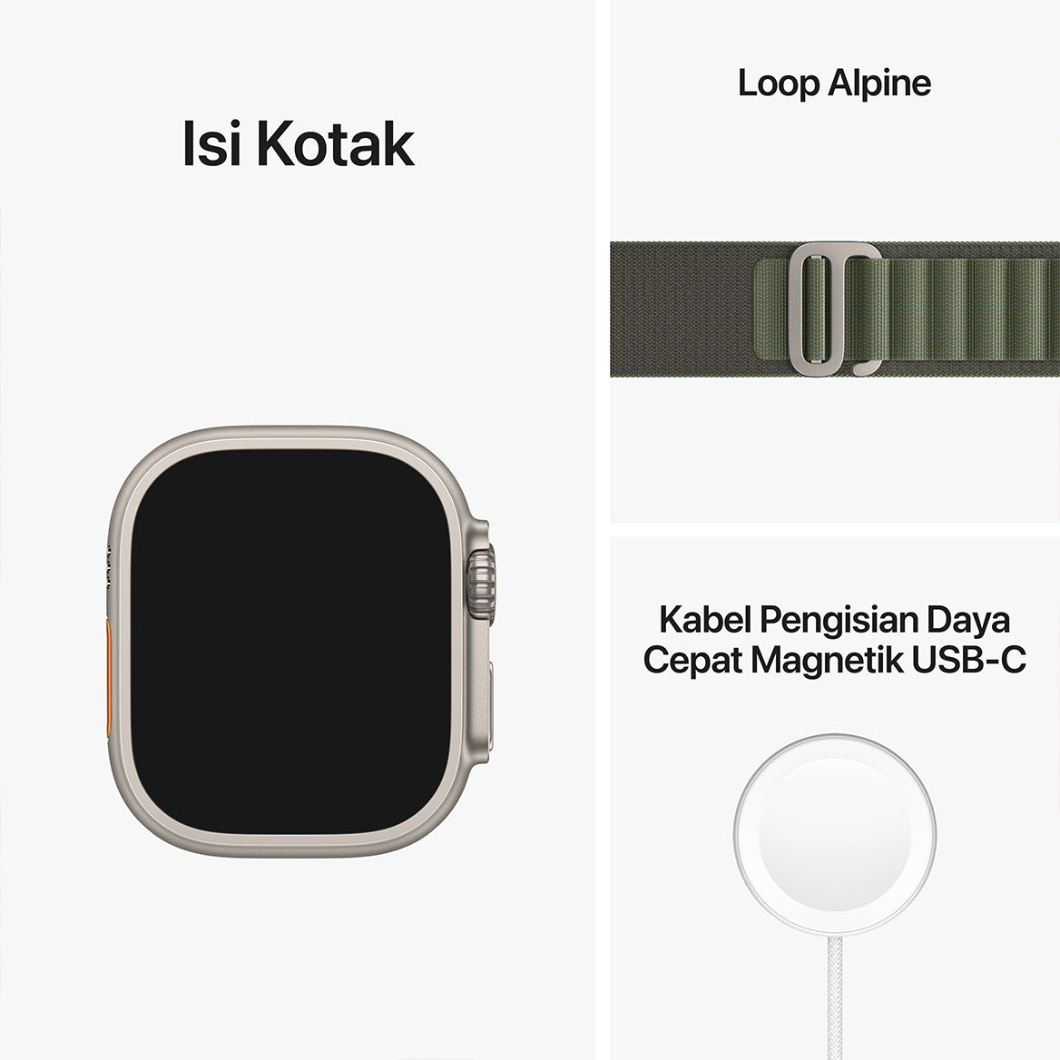 - Apple Watch Ultra memiliki level tahan air 100 meter menurut standar ISO 22810. Dapat digunakan untuk scuba diving rekreasional (dengan aplikasi pihak ketiga yang kompatibel dari App Store) hingga kedalaman 40 meter dan olahraga air berkecepatan tinggi. Apple Watch Ultra tidak untuk digunakan menyelam di kedalaman lebih dari 40 meter. Ketahanan air bukanlah kondisi permanen dan dapat berkurang seiring waktu. Untuk informasi tambahan, lihat support.apple.com/HT205000.