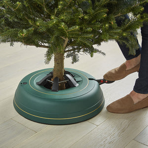This tree stand was the most stable, easiest to use, and had the highest level of durability in side-by-side evaluations conducted by The Hammacher Schlemmer Institute. During testing, 9'-tall trees installed in The Best Tree Stand resisted more than twice as much force as trees in lesser models before tipping over. Rated as the easiest unit to use, The Best model required no assembly, had a simple foot pedal that activated its trunk clamp, and had the biggest water reservoir at 2 1/2 gallons. It is constructed from heavy-duty plastic and supports trees up to 12' tall with trunk diameter up to 7". With single stainless steel cable operation and a water level indicator. 20" Diameter x 6" H. (20 lbs.)