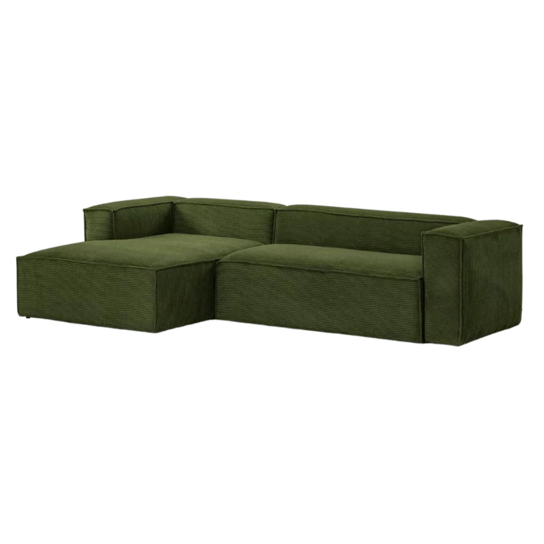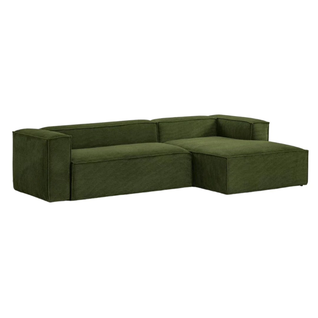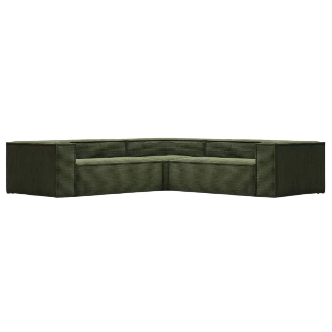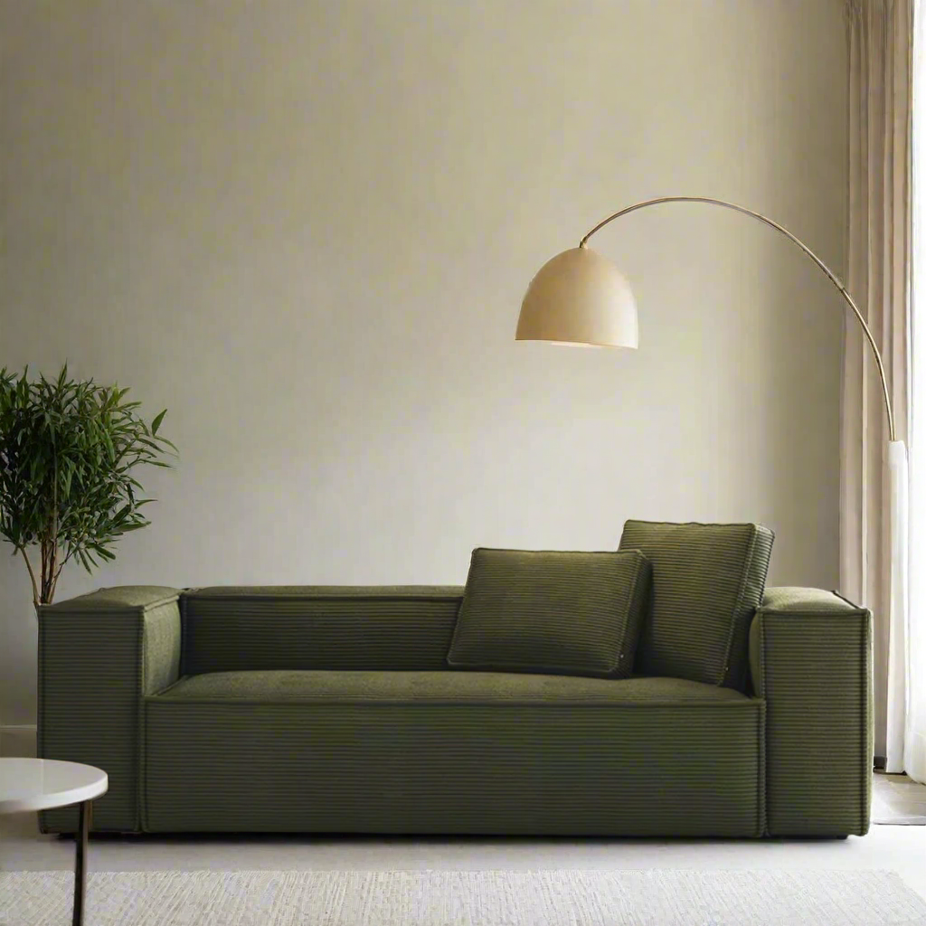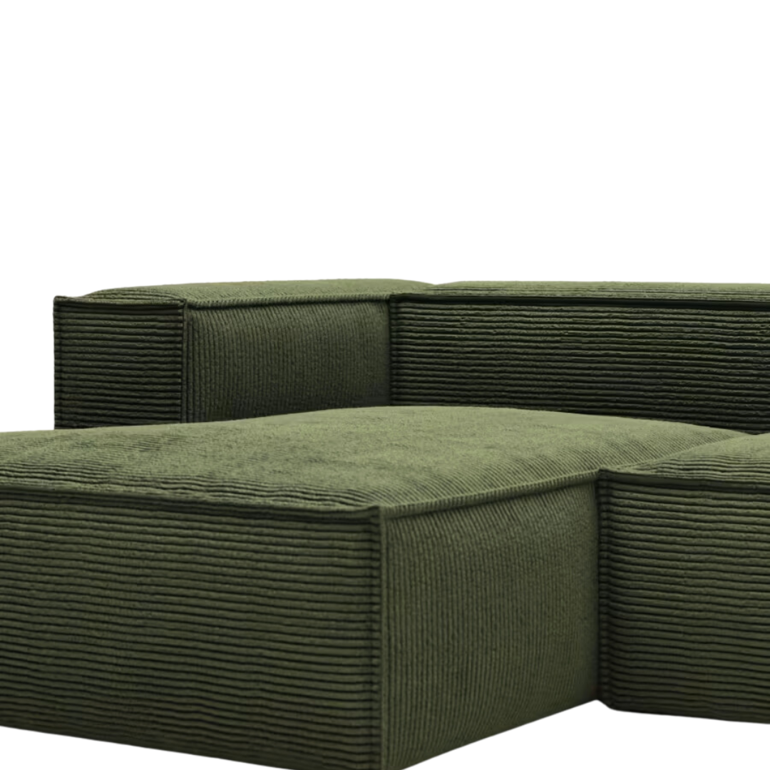 Transform your living room with the Block Modular Sofa in Moss Green. featuring a sleek and modern design that combines generous comfort with a bold aesthetic. Upholstered in soft. premium fabric with wide seams. this sofa offers a luxurious feel and a stylish touch to any space.