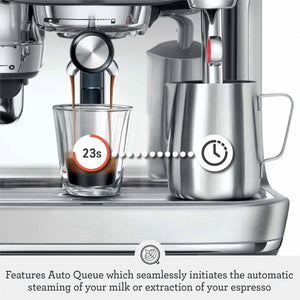- AUTO QUEUE: Save time by queueing up your next step; Seamlessly initiate the automatic steaming of your milk or extraction of your espresso