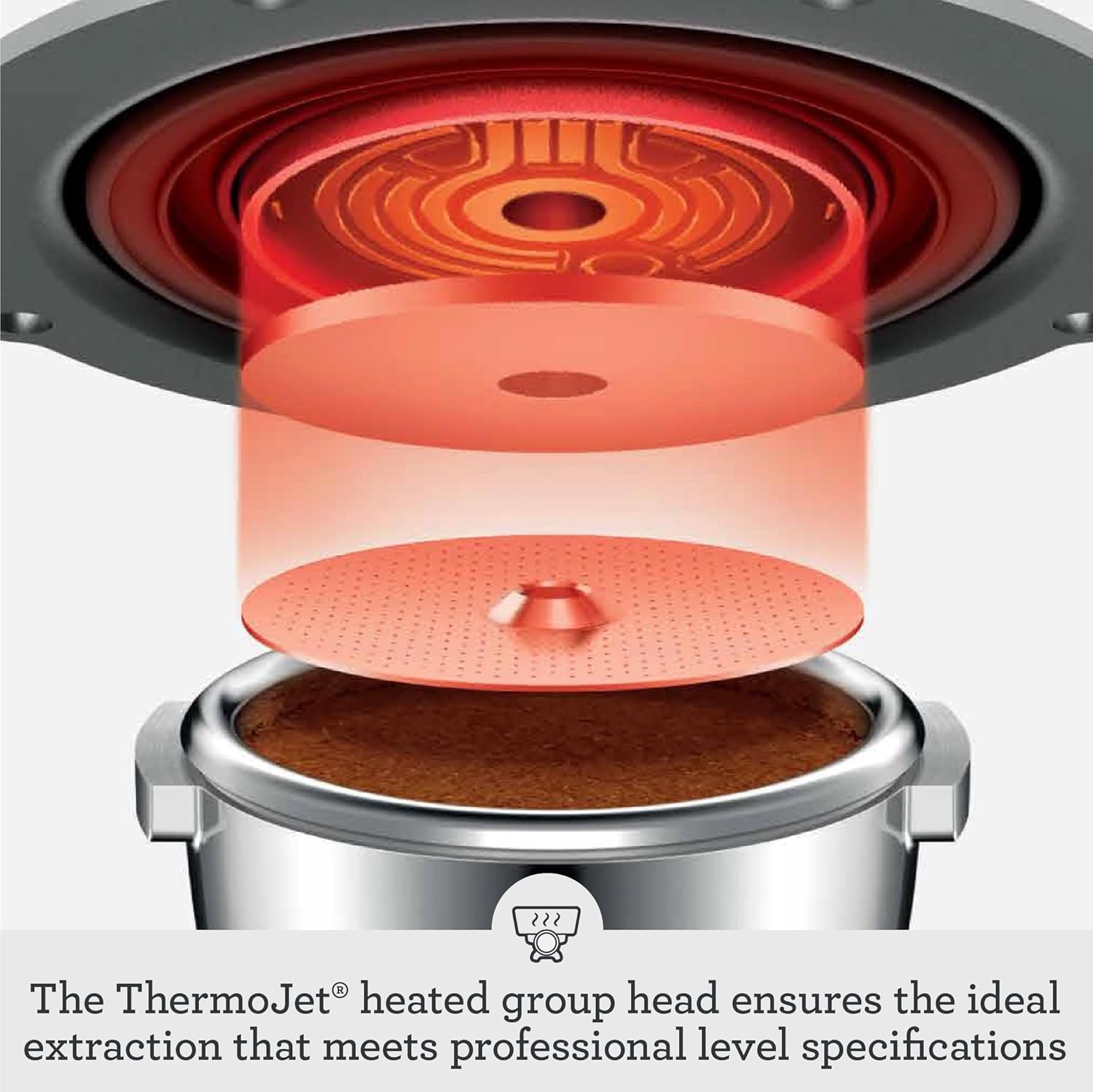 - PROFESSIONAL LEVEL TEMPERATURE CONTROL: Ensuring the ideal extraction that meets professional level specifications. the ThermoJet heated group head can be customized in +/- 1 degree increments to suit your taste