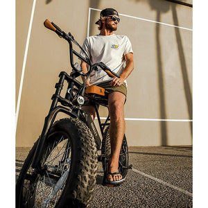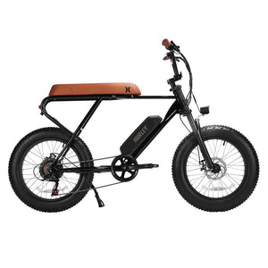 This is the electric-powered version of the classic gas-powered Mini Bike that first appeared in Popular Mechanics in the 1970s to show readers how to attach a lawn mower engine to a bicycle. This update to the theme is built with a brushless 500-watt electric motor powered by a 48-volt rechargeable battery that provides a maximum speed of up to 20 mph. With a steel frame that fits riders from 5'6" to 6'2", the bike has fork suspension and rides on 20" alloy double-walled wheels and 20" x 4" tires that trounce any terrain. A 7-speed Shimano drivetrain powers the rear wheel either via the electric motor (full throttle or rider assist) or pedaling. With handcrafted leather seat, comfort grips, LED headlight, mechanical disc brakes, and more. Battery provides a 40-mile range from a five-hour charge using the included adapter. 67" L x 28" x 43" H. (66 lbs.)