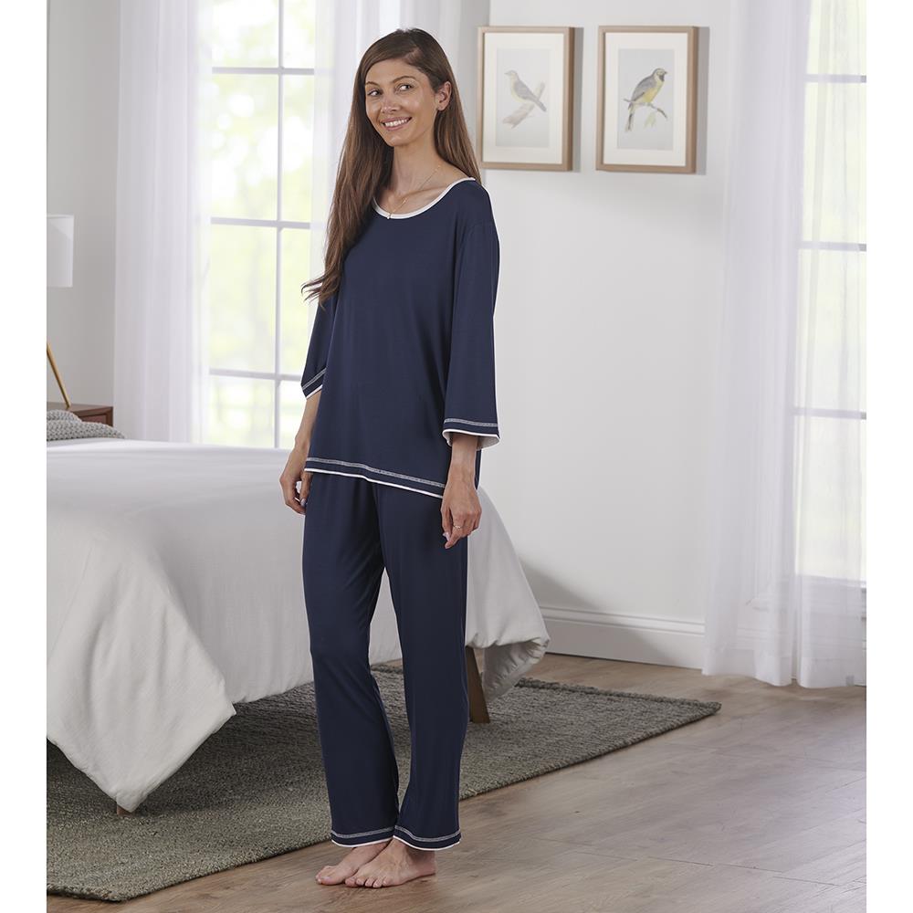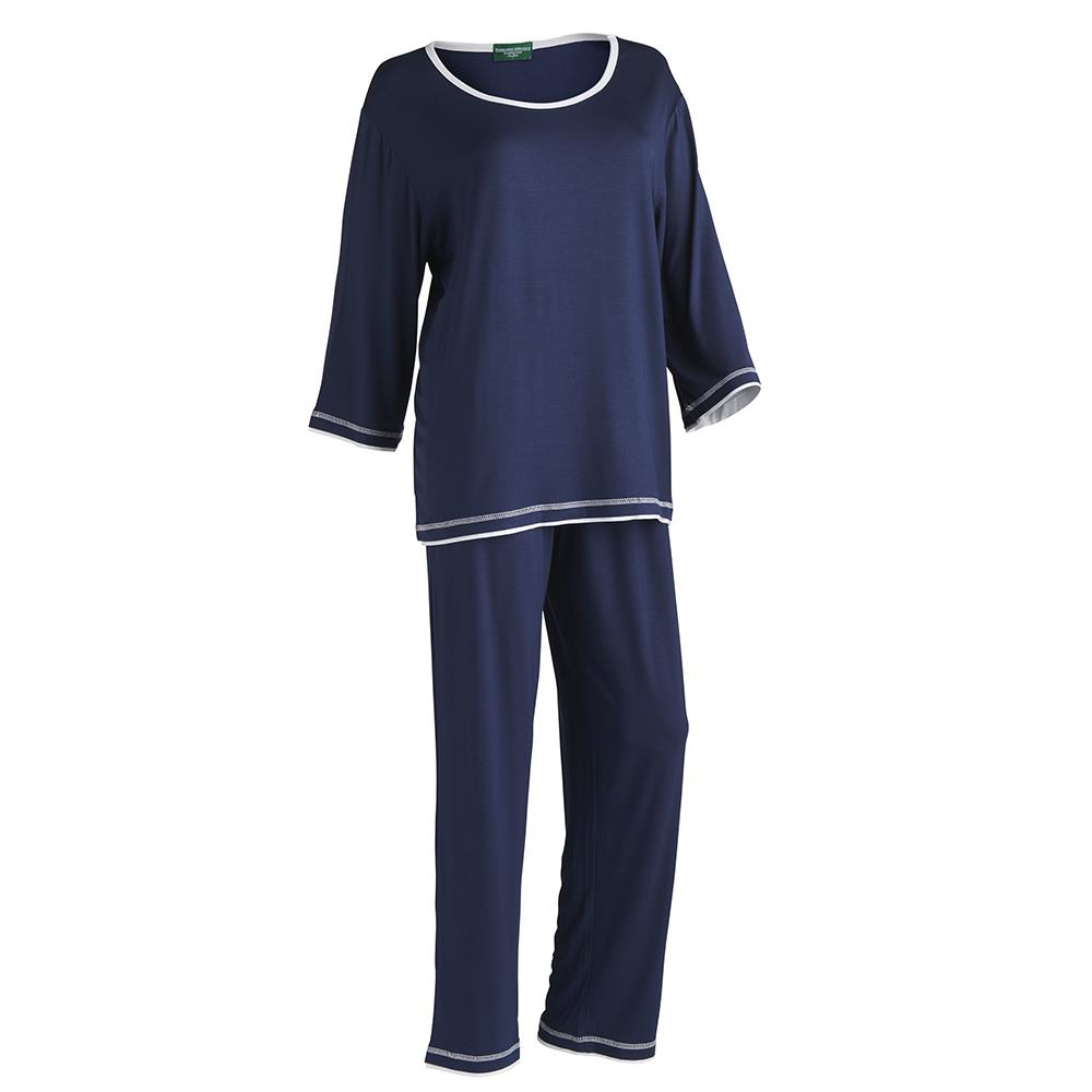 Available only from Hammacher Schlemmer, these are the pajamas made from mint stem fiber, an all-natural material that helps keep the wearer cool, dry, and comfortable for a better night’s sleep. The fabric’s unique performance technology offers a soft, silky feel like traditional cotton while wicking moisture off the skin and resisting allergy-triggering mites. Lightweight, wrinkle-resistant, and quick-drying. Two-piece set with an elastic waist (men's have side seam pockets in shorts). Navy.Women's sizes S, M, or L.