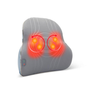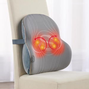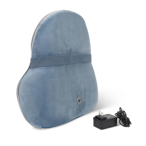 This is the rechargeable back massager that targets the lumbar muscles with a soothing Shiatsu massage. Its ergonomic shape makes it ideal for use on recliners, desk chairs, or in a car, and its cordless design allows it to provide relief without requiring proximity to a power outlet. The massager employs a pair of rotating nodes that work together to provide clockwise or counterclockwise directional massages. It has three massage modes and two heat settings that aid in pain relief and circulation. With an elastic strap that secures it around most chairs. Charges via AC. 15 3/4" L x 14 1/2" W x 4 3/4" D. (3 lbs.)
