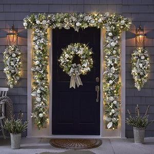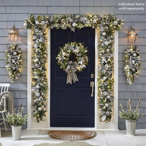 Available only from Hammacher Schlemmer, this is the cordless prelit holiday trim with the frosty beauty of freshly fallen snow on a sunny winter's day. The sconce may be draped indoors or outdoors under the shelter of a roof overhang, with no outlet required and without the unsightly tangle of extension cords. It is decorated with glossy- and matte-finished silvery ornaments and sprays of silver-tone berries and leaves nestled among a festive array of branches. Warm white LEDs lend a rich glow and an automatic timer turns the LEDs on for six hours and off for 18 hours. Includes remote. Boughs are made of weatherproof PVC that will last for years. Requires two D batteries. 70 LEDs; 78 tips. 28" L.