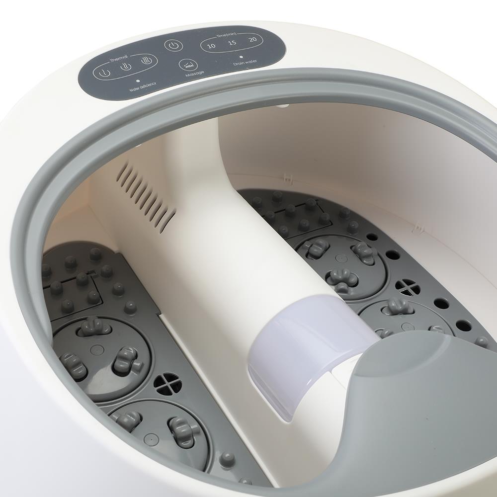This is the foot massager with steam that creates a refreshing in-home spa treatment while reinvigorating sore, tired muscles and joints. A mere 2/3 cup of water generates enough deep-penetrating steam for a full 20 minutes. As warmth bathes the feet, acupressure nodes target pressure points to release tension and boost circulation; massage rollers gently knead the heels and soles to melt away aches and pain. A fragrant sachet may be tucked into the discrete compartment to add a relaxing scent. With three heat settings and three time settings (10, 15, and 20 minutes). Each section snaps open for easy cleaning. AC plug. Fits feet up to size 11. 15" Diam. X 11" H.