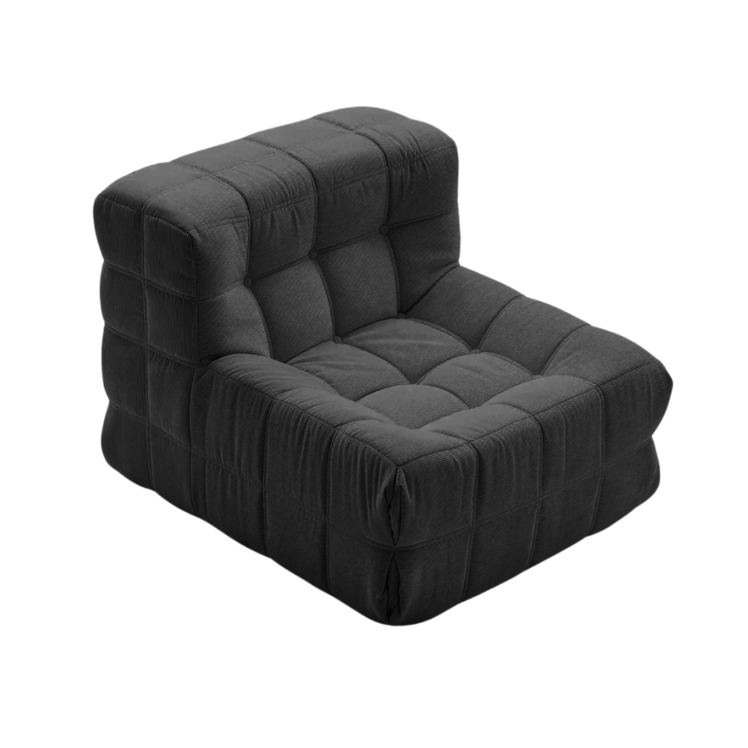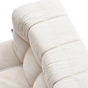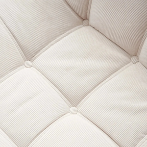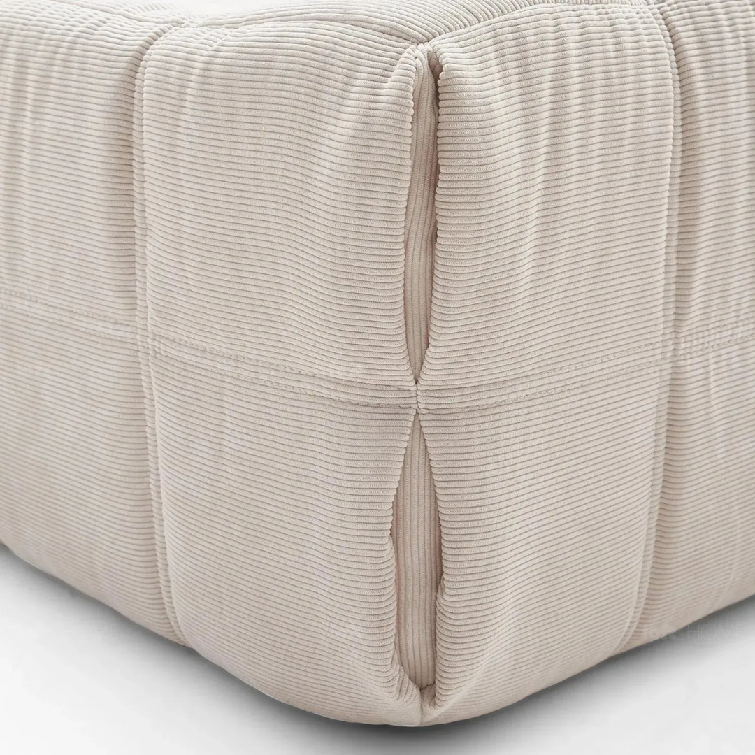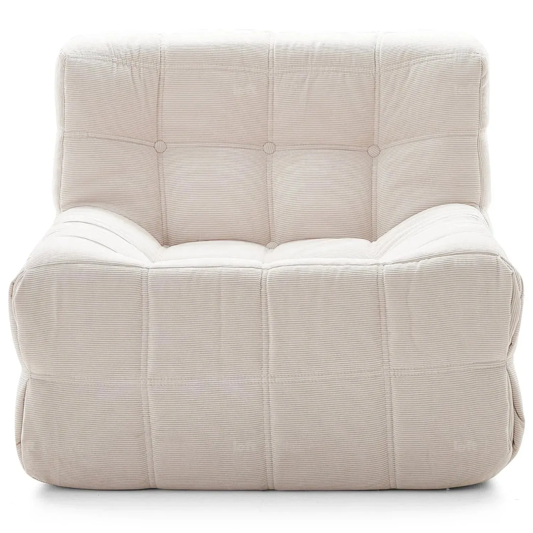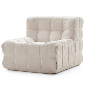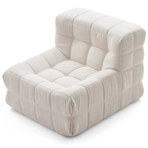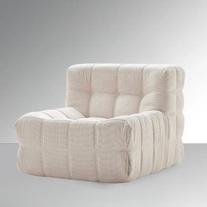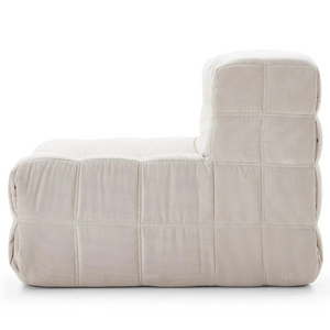 Introducing the Dice Compressed Lounge Chair in Natural White Textured Velvet—an elegant and versatile seating choice for both home and office spaces. With a unique grid design. each square cushion resembles a soft. pillowy loaf. creating a contemporary. inviting look. rafted with hand-detailed tufting. this lounge chair provides a balance of sophistication and comfort. Available in single and double-seat options. it arrives conveniently compressed and rolled in a compact box. making setup and movement effortless.