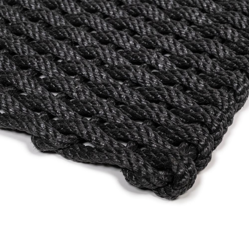 This is the durable all-weather doormat handwoven in Maine from commercial grade nautical rope. Its weave pattern enables the doormat to stand up to high foot traffic while protecting floors from mud, dirt, snow, and water. The nautical rope used in its construction is designed to withstand harsh conditions including salt water, UV damage, as well as mold and mildew. The doormat cleans easily with a hose and is 1 1/4" thick allowing most doors to clear it. Colors may fade over time and sizes may vary slightly from doormat to doormat. Charcoal or Sand. Extra Large. 38" W x 24" D.
