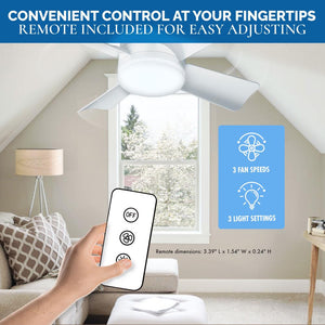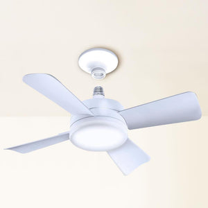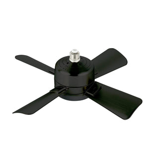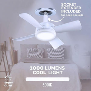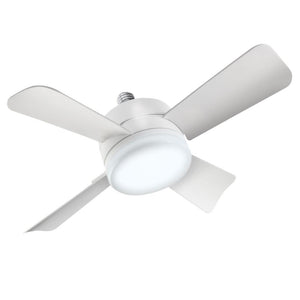 This is the easy-to-install ceiling fan that fits in an ordinary light socket. Ideal for a kitchen, bathroom, bedroom, or basement, the four-blade fan requires no tools or wiring yet provides three fan speeds and three levels of illumination. Installs within minutes and comes with an extender for deep sockets. Includes a remote control. White or Black. 5" H x 15 1/2" W x 15 1/2" D.