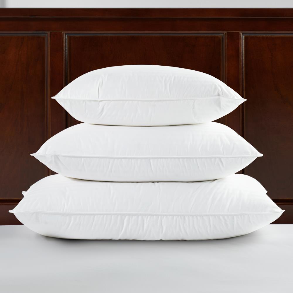 Available only from Hammacher Schlemmer, this is the luxury pillow with a firm feather center sandwiched between two layers of supple down. Ideal for side sleepers, it combines the structure of feathers and the fluffiness of down to provide a supportive yet soft surface. Its layers of down are made with large European down plumules from white ducks that ensures superior softness, loft, and breathability. With a 280-thread count cover, the pillow has a jacquard striped pattern and is 100% Hypoallergenic. King. 20" D x 36" W x 6" H.