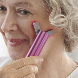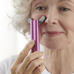 This is the facial wand that imparts a youthful glow to skin using a combination of micronutrients, low vibration, red light therapy, and gentle warmth. Micronutrients use low-voltage energy to stimulate facial muscles and deeper layers of the skin to promote smooth, healthy skin. Low-vibration massage decreases puffiness to boost skin's natural radiance, red light therapy (660nm) rejuvenates skin, and therapeutic warmth increases absorption of skin care products to reduce redness to support healthy, glowing skin.