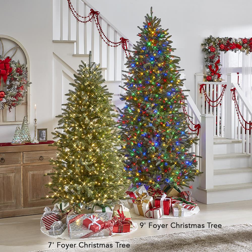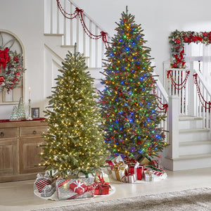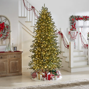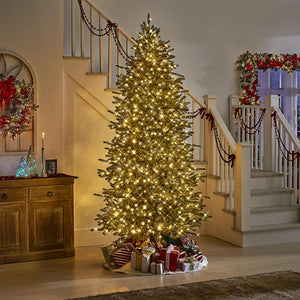 Available only from Hammacher Schlemmer, this is the prelit Christmas tree perfectly proportioned to bring a dazzling holiday light display to a foyer or small room. The lifelike tree is pre-strung with 800 long-lasting dual-color LED bulbs that seamlessly transfer from warm white to multicolor. With 2,934 realistic PE/PVC branch tips, it recalls the same textured appearance of a full size tree, yet features a slim 53"-wide silhouette. A multi-function remote provides convenient control of the six different light actions and color combinations, from steady to fading and flashing. The tree is comprised of five sections that simply stack and lock into place and rest on the included metal stand. AC plug. 53" Diameter. (54 lbs.)