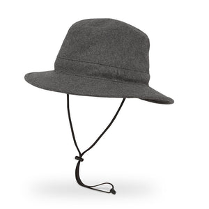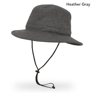 Designed by a concern specializing in technical headwear since 1982, this is the hat made from Merton wool and a flannel lining that keeps the cold from gaining purchase against the head. The hat’s shell is made from a blend of 60% wool/30% rayon/10% nylon and its lining is made from 100% polyester flannel. Its 2 1/2" front brim, 2;" sides, and 2 3/4" back provide UPF 50+ sun protection. With a hidden crown pocket, removable chinstrap, internal adjustable sizing, and a strap that keeps sunglasses secure. Spot clean. Black or Heather Gray. Sizes M or L.