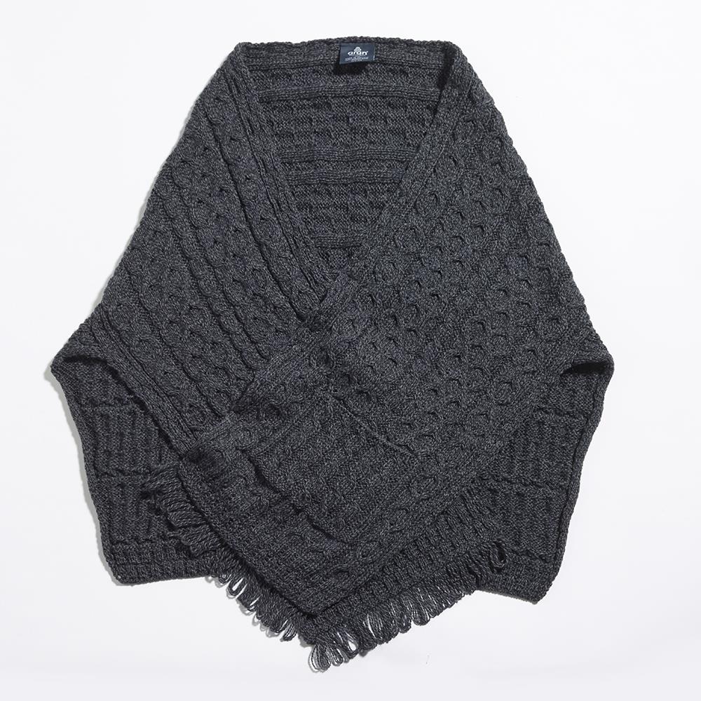 This is the 100% genuine merino knit garment from Ireland that effortlessly drapes over the shoulders to repel drafts while reading or working at a computer. It features two traditional Aran stitches—the honeycomb stitch and the cable stitch—and a tasseled finish for a contemporary touch. Two deep front pockets provide secure storage for reading glasses or a smartphone. From a family-owned store that has been a landmark in Galway since 1946. Imported. Hand wash or dry clean. Charcoal, Beige, or Ecru. One size fits all.