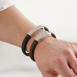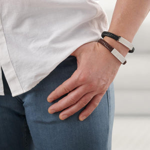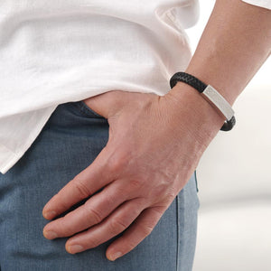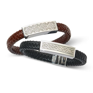 This is the gentleman’s leather bracelet that features richly detailed Celtic knot-work. One of Ireland’s most iconic symbols, Celtic knots have decorated Irish art since the early Middle Ages and symbolize infinite love with no beginning or end. Handmade in Dublin, the bracelet contains a black woven leather band with a stainless steel medallion and clasp. 8 1/4" L.