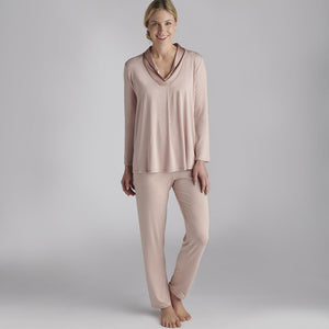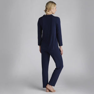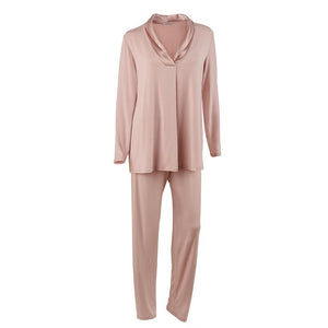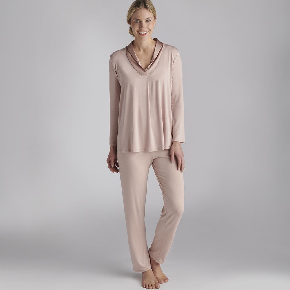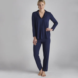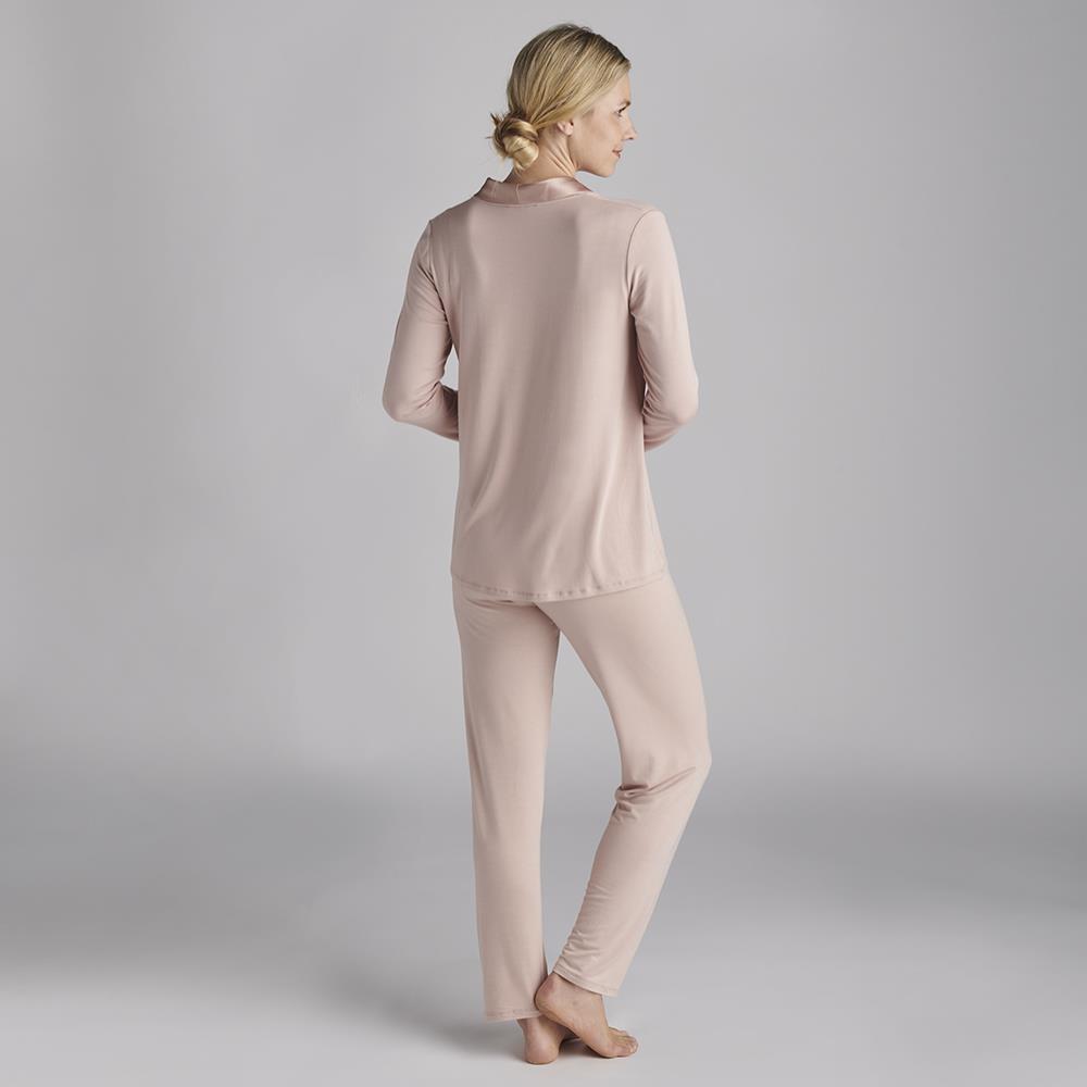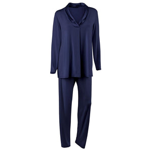 Available only from Hammacher Schlemmer, this is the loungewear made in Italy that provides a soft hand and luxurious drape that stretches as you move. The loungewear is made with a blend of cotton that enables it to be breathable, easy to care for, and low pilling, and polyacrylic that prevents creases, and elastane that enables freedom of movement. The cardigan features a satin collar, side slits, and slightly flared arms while the pants contain an elastic waistband and slightly flared legs. From a family-owned garment company outside of Bologna that has been crafting authentic Italian designs since 1980. Machine washable. Imported. Navy or Rose. Runs slim, if between sizes, please order one size up. Sizes S, M, or L.