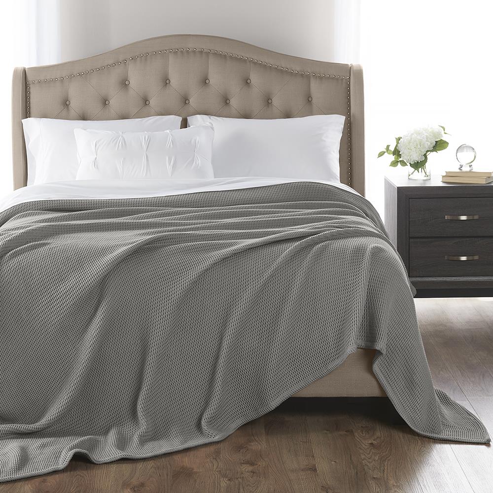 Available only from Hammacher Schlemmer, this is the waffle blanket made of 100% Turkish cotton. Using long-staple Aegean cotton sourced from the legendary Denizli region, the fibers are woven into a waffle weave texture, resulting in a blanket that provides extra warmth yet is breathable enough to prevent overheating. The blanket has been certified by Oeko-Tex 100—a 25-year-old international organization that tests textiles for harmful chemicals and substances—to be free of pesticides, extractable metals, and preservatives such as formaldehyde. Machine washable. Imported. Gray, Navy, White, or Tan.