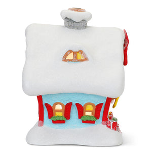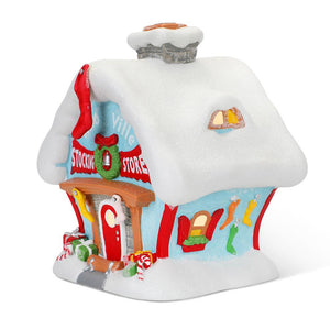 This is the illuminated building that reproduces the Whoville Stocking Store. It is handmade from porcelain and handpainted in colors that evoke the classic Christmas story told by Dr. Seuss. AC plug. 7 1/4" H x 5 1/2" W x 6 1/2" D.