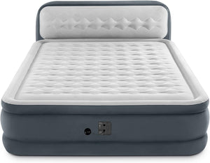 Intex 64447ED Dura-Beam Deluxe Ultra Plush Air Mattress with Headboard: Fiber-Tech – Queen Size – Built-in Electric Pump – 18in Bed Height – 600lb Weight Capacity