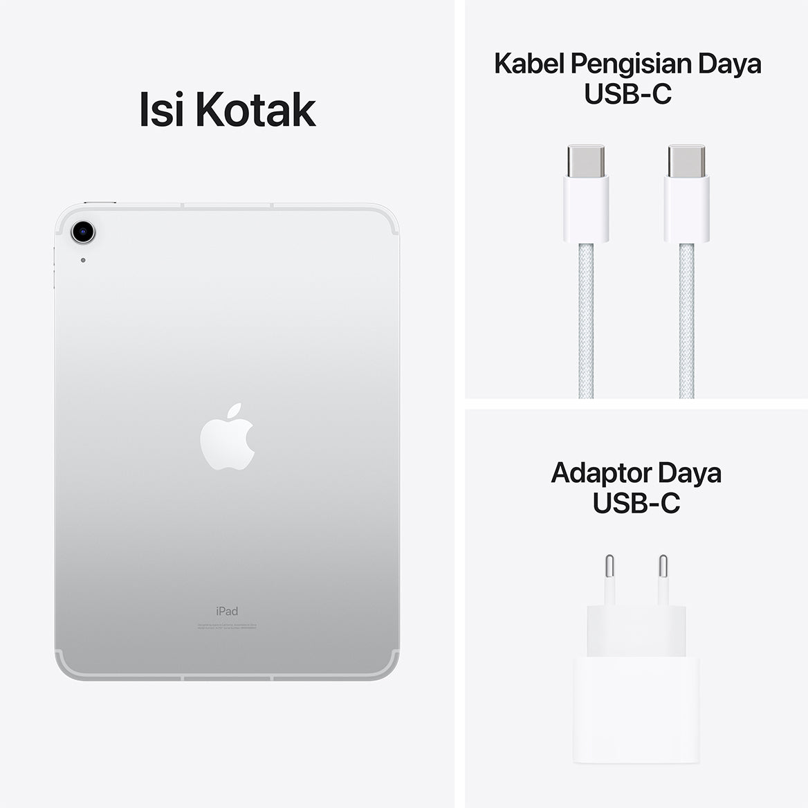 - Memerlukan Adaptor USB-C ke Apple Pencil agar dapat digunakan dengan iPad (generasi ke-10). Tergantung ketersediaan.