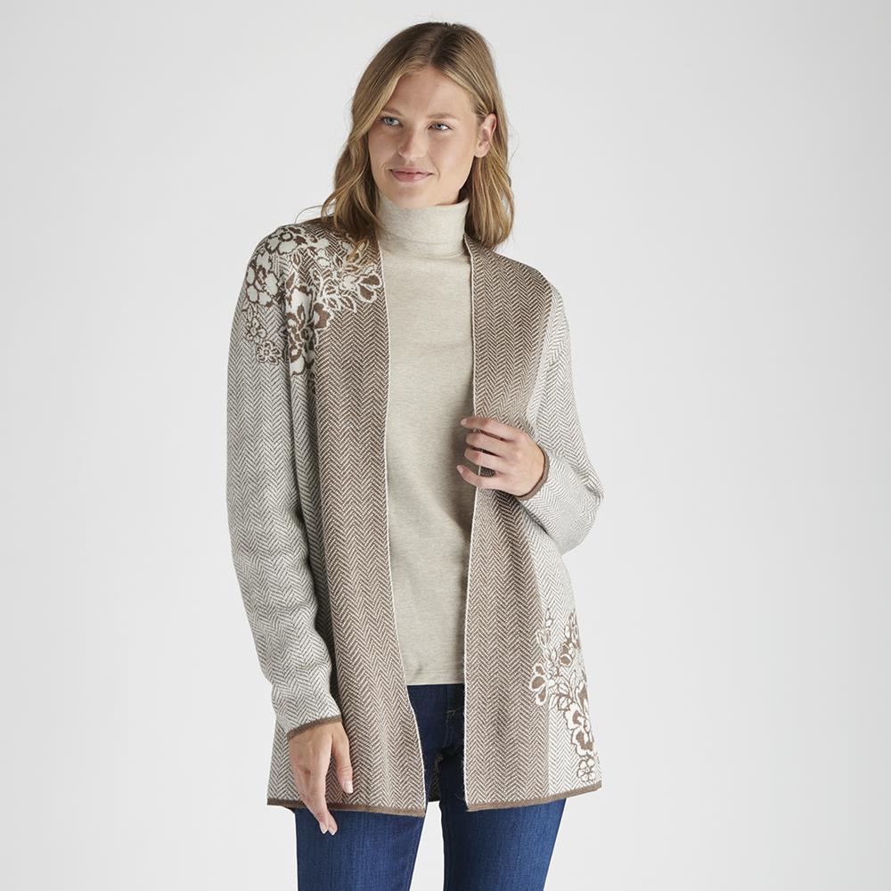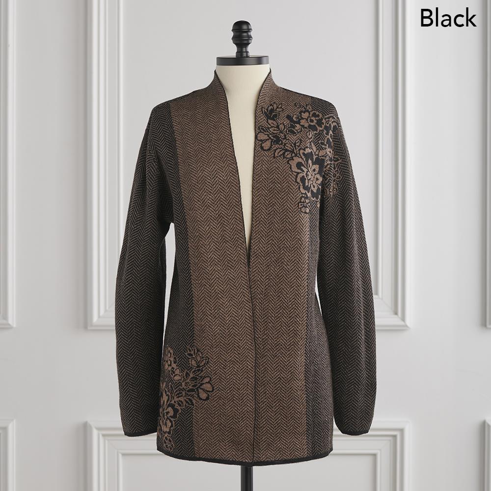 This is the open swing cardigan woven in Peru from baby alpaca yarn, the natural fiber renowned for its lightweight warmth and silky touch. Warmer than cashmere and every bit as soft, alpaca is one of the most sought-after natural fibers in the world. Thanks to its incredibly fine fiber, the resulting cardigan possesses a smoother, less-itchy finish than a garment made with coarser sheep or goat wool. Knitted by skilled craftsmen in Peru, the alpaca yarn is blended with 50% acrylic to create a garment of lasting durability that resists stretching, shrinking, and wrinkling. Hand wash or dry clean. Imported. Black or Beige. Sizes S, M, L, and XL.