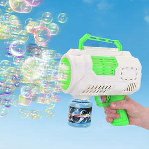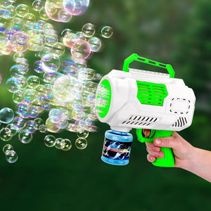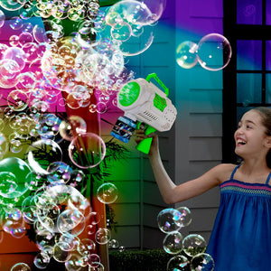 Unleash a whirlwind of bubbly fun with the ultimate bubble gun that turns any backyard gathering into a vibrant, laughter-filled celebration. The LED Lightshow Bubble Blaster dazzles with its ability to produce 1,000 bubbles per minute, creating an enchanting cloud of bubbles that captivates kids and adults alike. Equipped with 40 rotating bubble-making holes, this bubble blaster gun ensures an endless stream of shimmering orbs with every pull of the trigger. The integrated bubble solution tank provides up to 20 minutes of uninterrupted bubble magic, so kids can enjoy nonstop fun without the hassle of constant refilling or dipping.