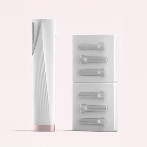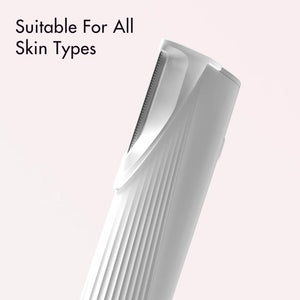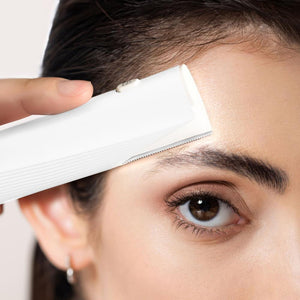This is the beauty device that smooths and rejuvenates the skin by removing peach fuzz and dead skin cells. It employs ultrasonic vibration and precision blades to effortlessly glide across the skin and remove unwanted hair and skin cells, minimizing the appearance of age spots, wrinkles, fine lines, and enlarged pores. A built-in LED helps locate fine hairs and the unit also comes with blades for shaping eyebrows. Includes three facial hair blades and three eyebrow blades. Suitable for all skin types, tones, and ages. Charges via USB-C; a full charge provides one hour or use. 4 3/4" L x 1" W x 1/2" D. (6 oz.)
