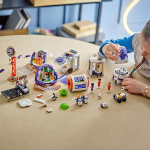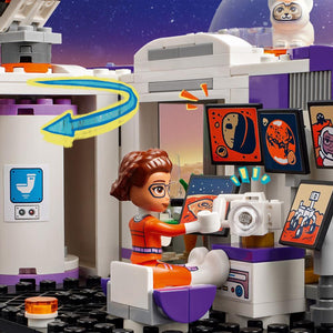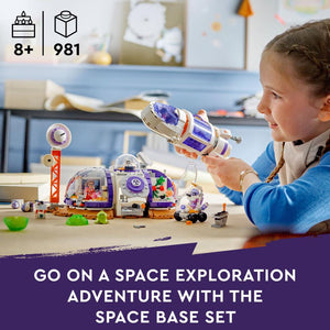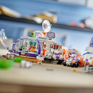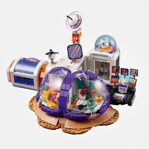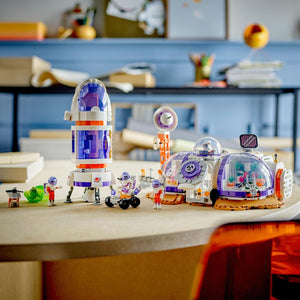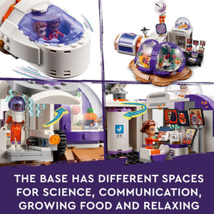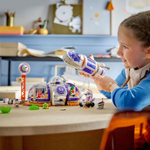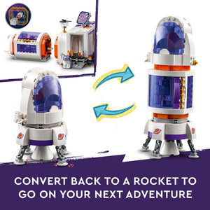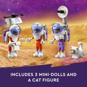 This is the 981-piece LEGO® Friends set that launches young astronauts on an interplanetary mission to establish a base station on Mars. Kids can imagine life on the red planet as they build the rocket and transport the characters to the research base. The base consists of pods for science, communication, growing food, and relaxing that can be rearranged in different configurations. The set includes an abundance of toy accessories and details to fuel role play including a rover, drone, and scientific tools. Includes mini-doll figures of Olivia, Aveline, and Julian from the Lego Friends animated TV series as well as space cat Jones. Ages 8 and up. Rocket measures 8" H x 3 1/2" W x 3 1/2" D.