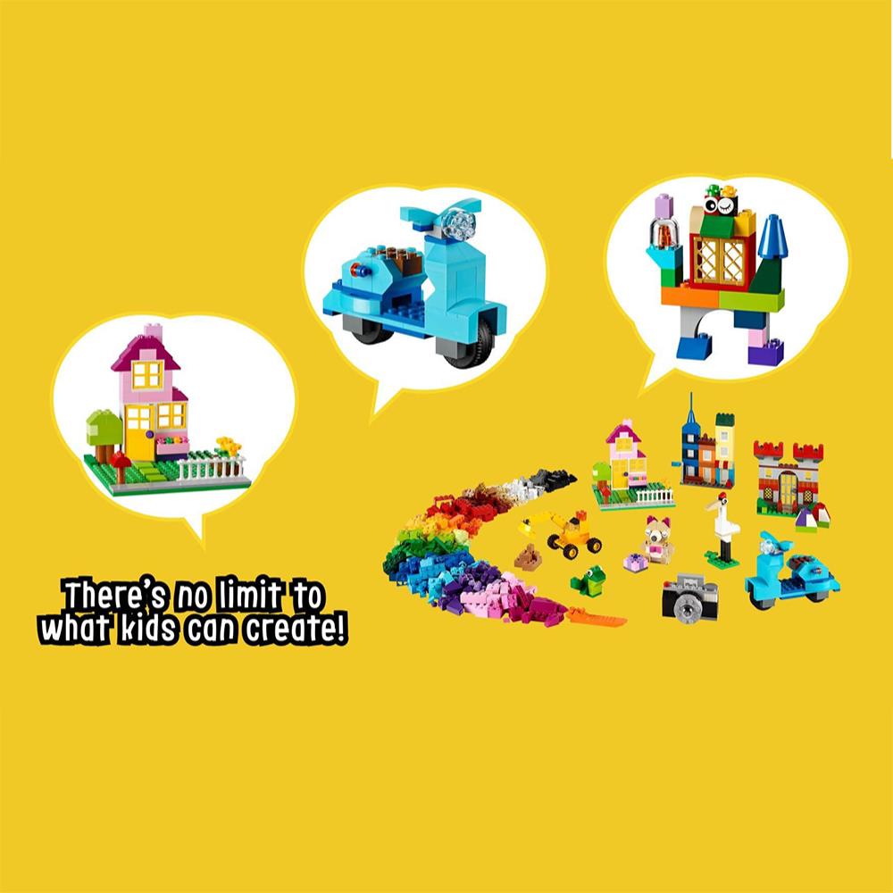 This is the oversized LEGO® storage brick that contains 790 pieces including windows, doors, tires, and baseplates. It comes with easy instructions and ideas to get builders started such projects as a scooter, house, camera, and animals. Made of 100% polypropylene, the storage container’s box provides ample storage for multiple LEGO bricks, minifigures, baseplates, instruction booklets, and other accessories. Ages 4 and up.