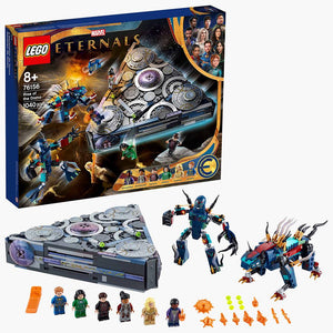This is the 1,040-piece LEGO® set based on the Marvel Eternals movie that transports young superheroes on the Domo to reenact the final battle between the Eternals and the Deviants. Measuring over 8" long, The Eternals’ spaceship, with its detailed interior, ensures imaginative play with three sides that lift open to give access to the cockpit, weapons room, laboratory, and more. Includes mini figures of Eternals Makkari, Ikaris, Thena, Sersi, Druig and Phastos (the latter two available only in this only LEGO playset). Also comes with two evil Deviants (including their leader Kro), weapons, and accessories. Ages 8 and up.