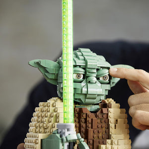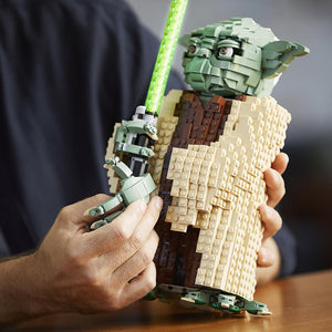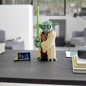 This is the LEGO® set that forms an intricately detailed model of Yoda. Based on the incarnation of the Jedi Master in Star Wars: Attack of the Clones, the set’s 1,771 pieces assemble to form an over 16"-tall model (including lightsaber) that has a posable head, eyebrows, fingers, and toes. Includes a Star Wars plaque and a Yoda minifigure display. Ages 10 and up.