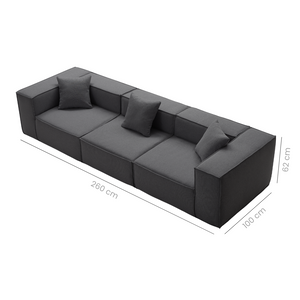3 Seater: (Left Armrest Seat + Armless Seat + Right Armrest Seat) 260cm W x 100cm D x 62cm H