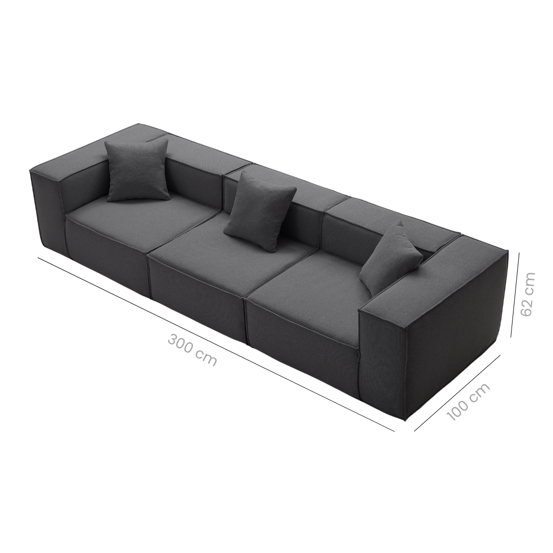 4 Seater: (Left Armrest Seat + Armless Seat + Right Armrest Seat) 300cm W x 100cm D x 62cm H