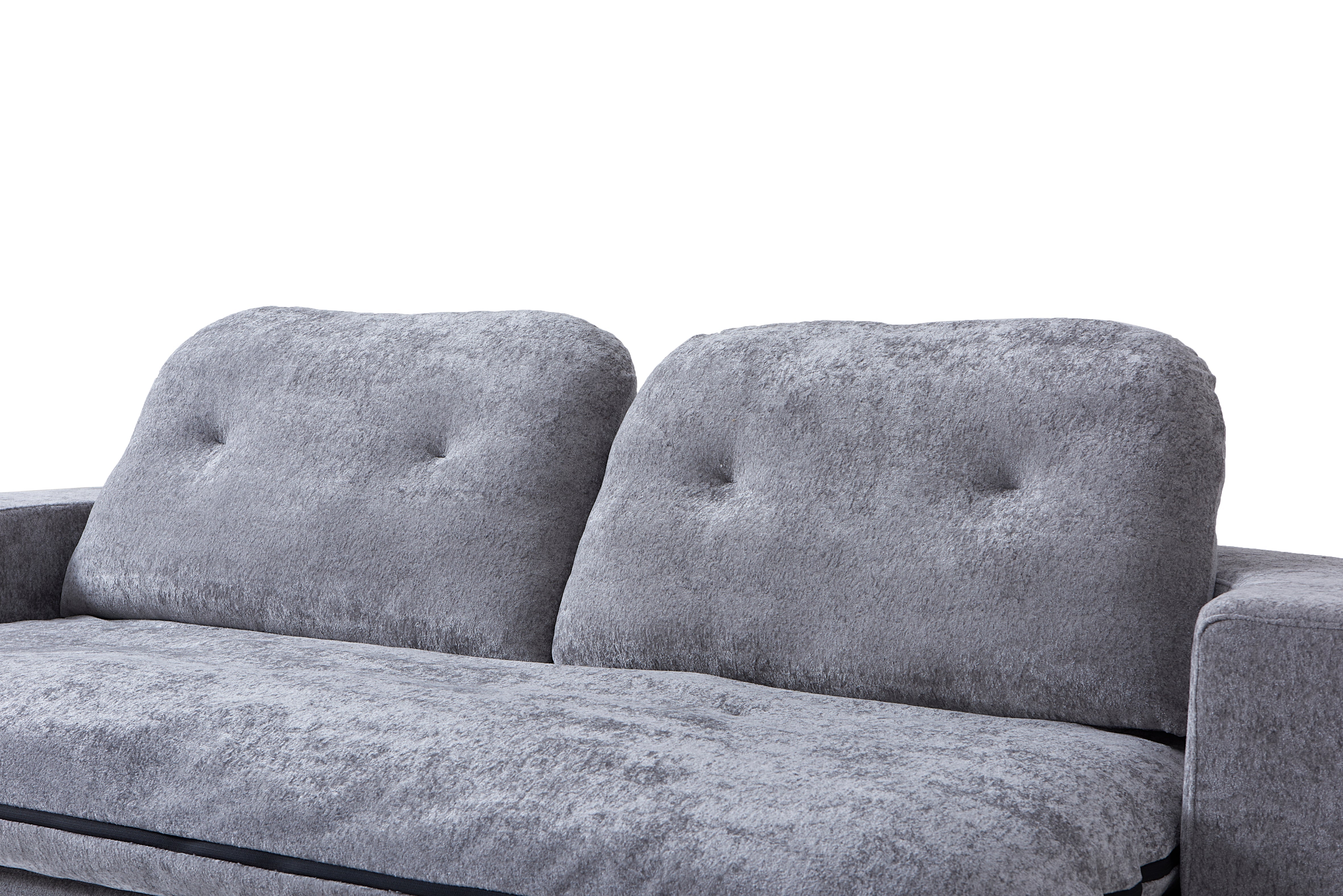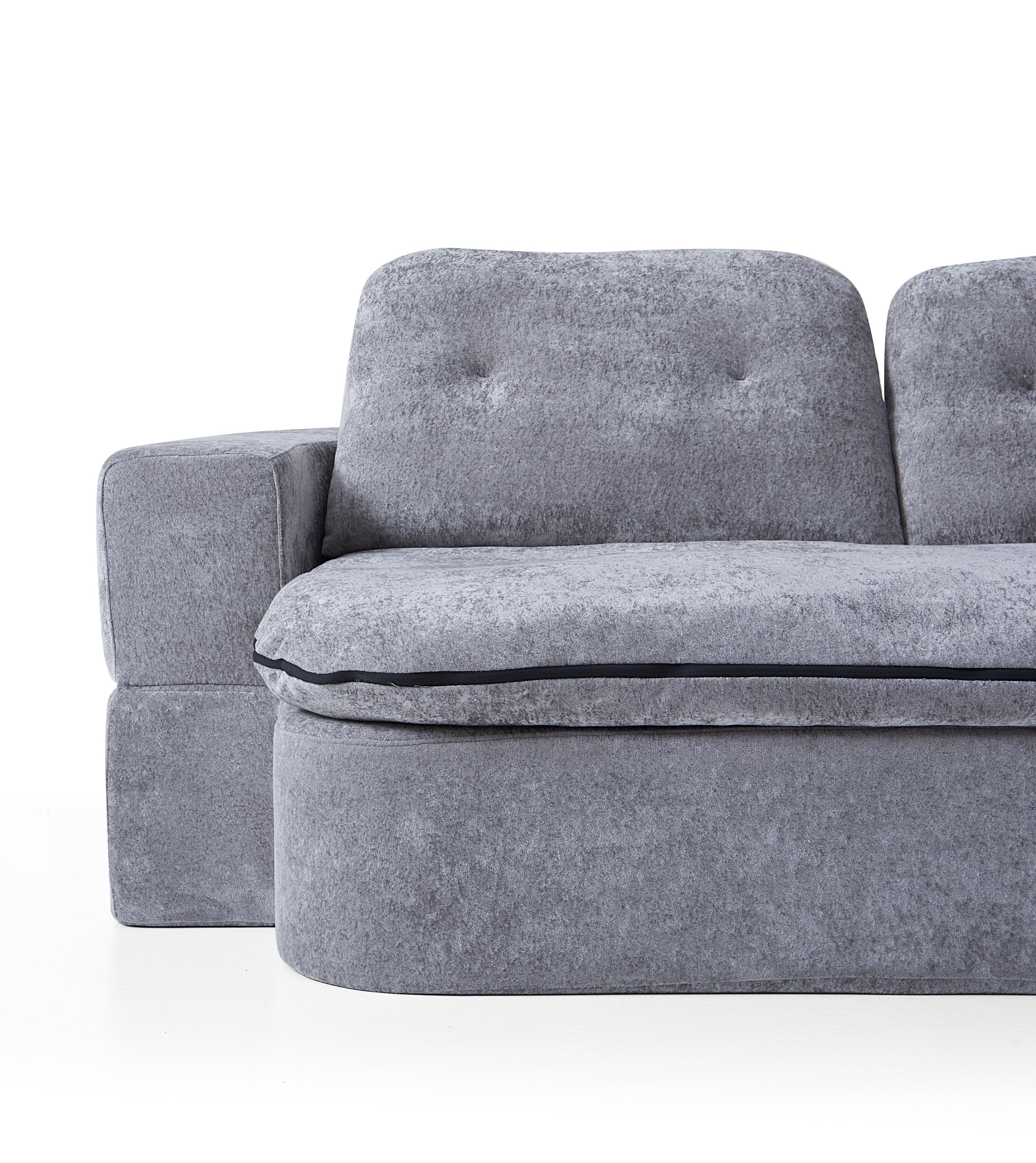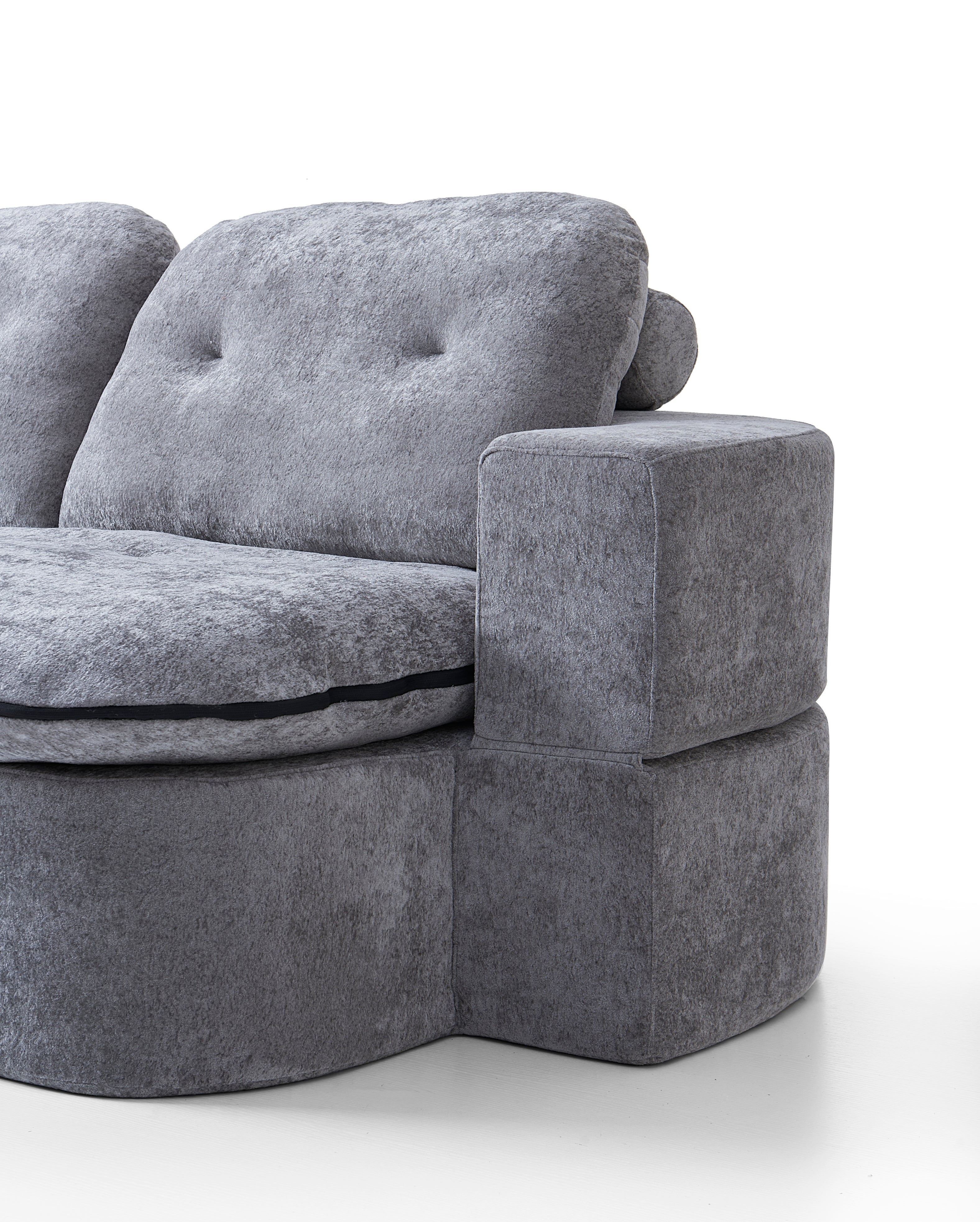Loop's clever design features a flip-down backrest that transforms into an extended bed space—perfect for guests or lazy Sundays. But the real surprise? The seat cushion doubles as a plush blanket. Unzip it to reveal a fluffy. full-size cover to snuggle into. then zip it back up when it's time to lounge again.