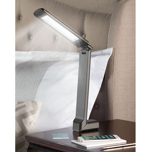 This is the award-winning portable lamp that helps combat jet lag by shining the full-spectrum light needed to regulate sleep. Its ultrabright 20,000 lux LEDs simulate the white light of the noon sun—an important trigger for circadian rhythms—and sitting in front of the lamp at a time one needs to be awake at the destination quickly teaches the body when to be alert and when to be drowsy in a new time zone. Weighing only 1 lb., the slim, cordless lamp slips into a carry-on and sets up on an airplane tray table or hotel nightstand. With LEDs rated to last 50,000 hours, it also mitigates the effects of seasonal change and shift work. Comes with a USB cable and AC adapter for charging via a laptop or wall outlet. 12" H x 3 1/4" W x 2 1/4" D. (1 lb.)