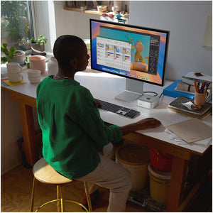 • KONEKSI YANG MUDAH — Terhubung dengan port Thunderbolt, HDMI, dan Gigabit Ethernet di bagian belakang, dan untuk pertama kalinya, port USB-C depan dan jek headphone.