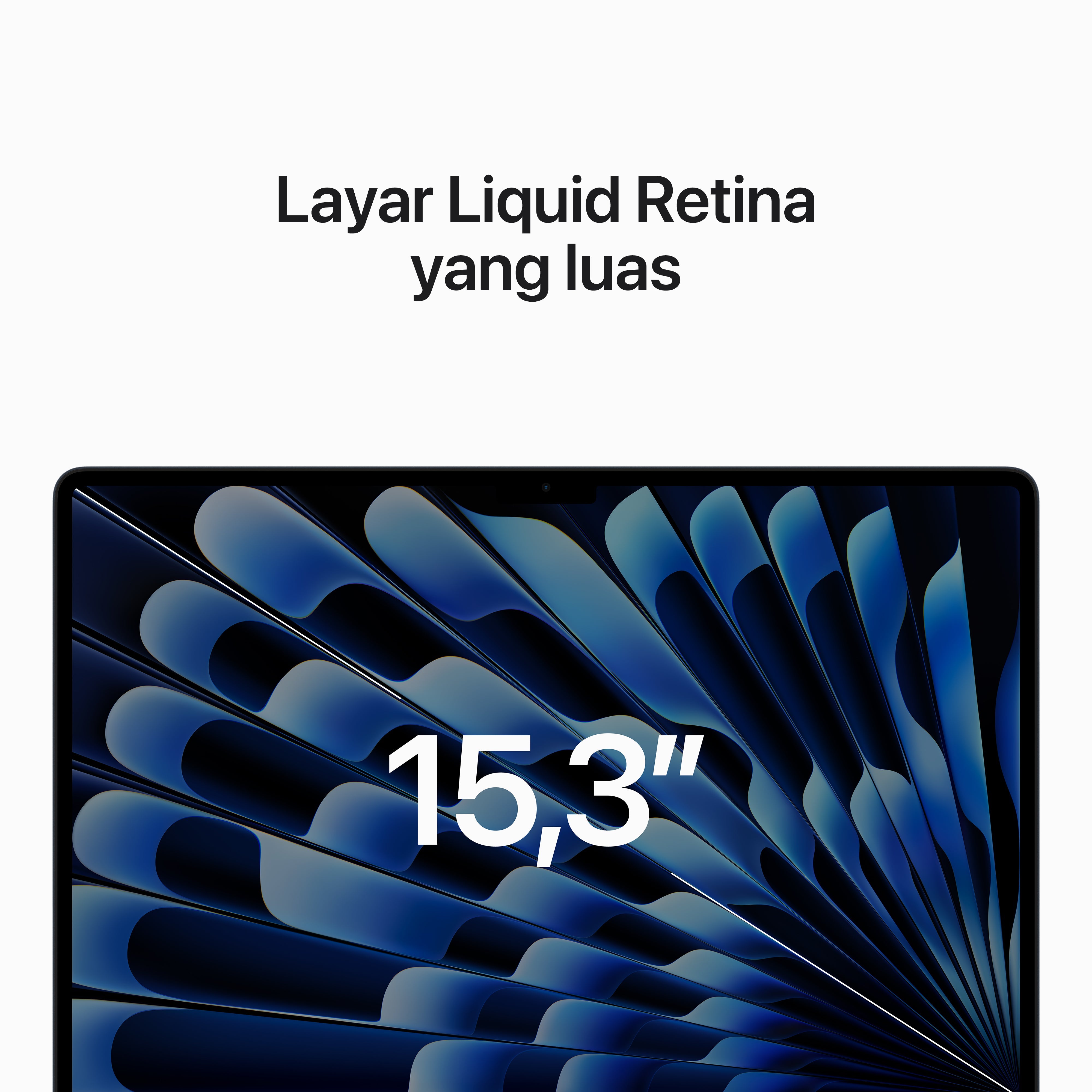 - Layar Liquid Retina 15,3 inci dengan kecerahan 500 nit dan warna luas P3 untuk gambar yang cemerlang dan detail luar biasa3