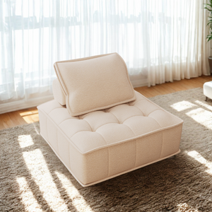 A versatile lounge chair that's both stylish and functional. Its ergonomic. armless design maximises seating space while providing full support through its plush backrest and square pillow. making it perfect for settling in with a book or enjoying a cosy night in.