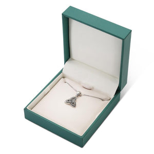 This is the sterling silver pendant designed after the classic Celtic trinity knot and accented with marcasite stones. One of Ireland’s most iconic symbols, the Celtic trinity knot has decorated Irish art since the early Middle Ages and symbolize the Holy Trinity, eternal life, and enduring love with no beginning or end. The pendant is embellished with marcasite, a light crystal with a metallic finish that provides a unique sparkle. The pendant also comes with an 18" sterling silver chain and is hallmarked in Dublin Castle—guaranteeing its Irish authenticity. Pendant 13mm L x 13mm W.