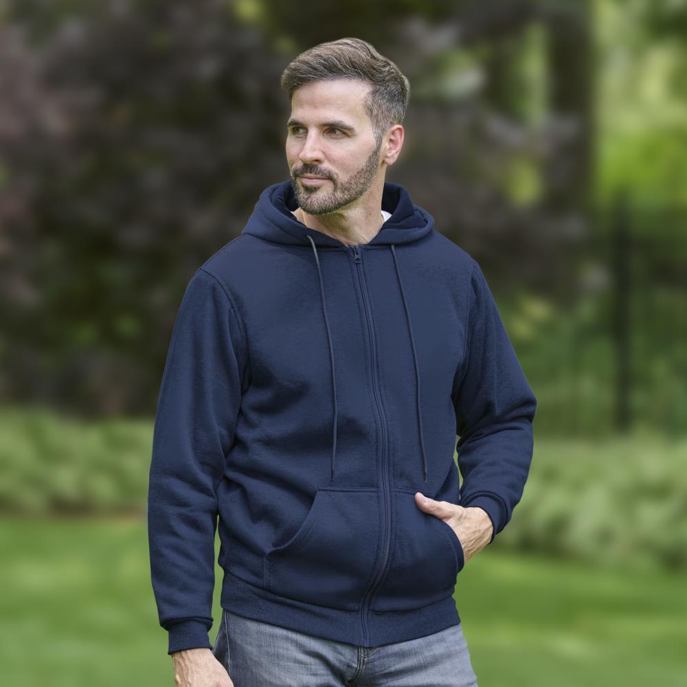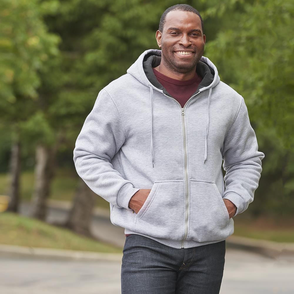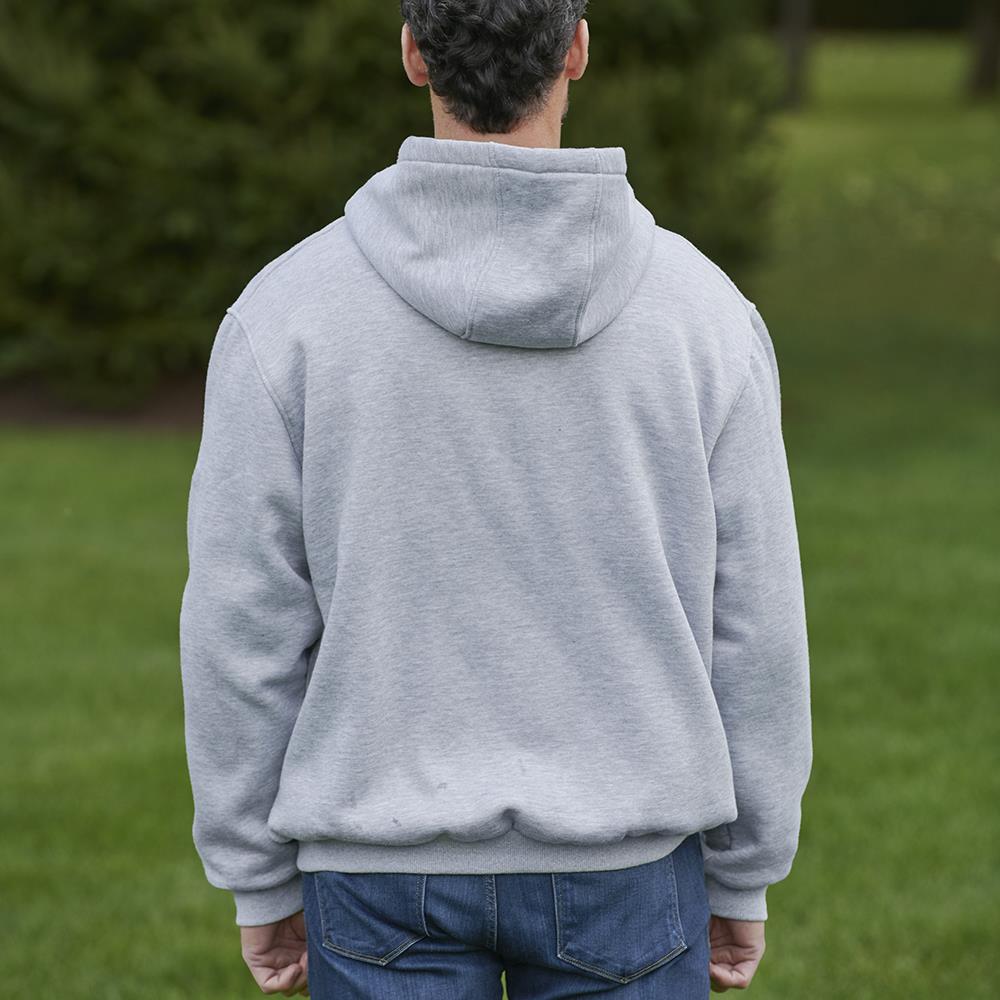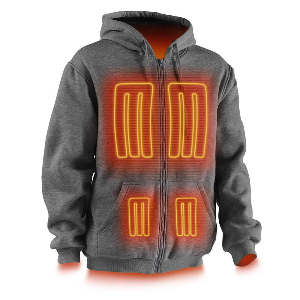 Available exclusively from Hammacher Schlemmer, this is the zip-up fleece hoodie with strategically placed rechargeable heating elements for a powerful boost of warmth when temperatures drop. With a choice of four heat settings, the carbon fiber elements quickly and evenly spread warmth across the chest, back, and both pockets at the touch of a button. A full charge lasts 20 hours on its lowest setting, 12 hours on the next lowest, six hours on medium, and four hours on high. The powerbank that infuses the jacket with soothing warmth can also power a smartphone, tablet, or any USB-charged device. Soft, high-pile heavyweight polar fleece interior and 100% polyester exterior. Adjustable drawstring in the hood. Hand wash. Light Gray or Dark Gray. Sizes M, L, XL, and XXL.