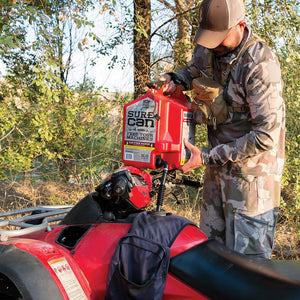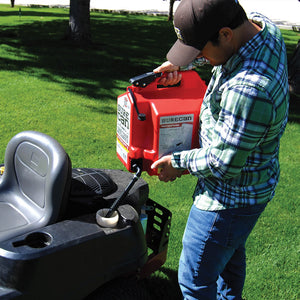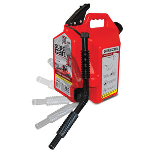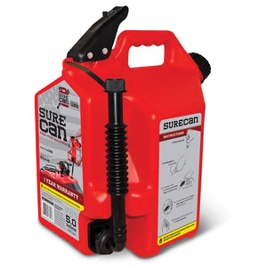 Winner of an Edison Award for innovation, this is the patented gasoline dispenser designed for easy pouring with no mess. Ordinary gas cans flow sluggishly and must be tilted at an awkward angle when pouring, making them uncomfortable to handle and prone to spilling. This gas dispenser offers a better way to pour using an 8 1/2" long spout on its bottom that rotates 180º, a trigger valve, and a self-venting system for effortless, controlled flow of up to two gallons a minute. Simply position the spout, press the thumb trigger to start the flow of gasoline, and release it to stop. A large, child-proof spout on top allows easy refilling. Six-layer polyethylene construction provides exceptional durability. Made in the U.S. Not recommended for diesel fuel. Five Gallon Gas Dispenser. 13 1/2" H x 12 1/4" W x 9" D. (2 1/2 lbs.)
