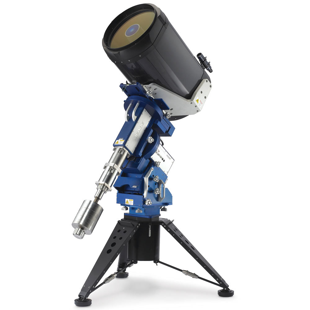 This is the advanced telescope that provides the same optical performance demanded by the world's leading astronomical research institutions. Similar to the Ritchey-Chrétien design used by the U.S. Naval Observatory's telescope in Flagstaff, Arizona and NASA's Hubble Space Telescope, this model uses a coma-free optical system that eliminates aberrations to provide a flat, crisp field of view. Its carbon fiber optical tube's 20" diameter aperture provides a light gathering power 5000 times greater than the human eye, ideal for observing the effects of stellar winds within the Orion Nebula, marveling at the counter-rotating cloud bands of Jupiter, or gazing at the one-trillion stars of the Andromeda Galaxy. A built-in GPS automatically orients to and tracks any of the 144,000 celestial objects stored in its on-board computer. Using a large-format CCD camera (not included), it can take pictures and videos of objects in real-time as they move in the heavens, remotely controlled from a computer using the included software or the Internet. Its 12-volt power supply powers a cooling fan and heater that prevents dew from forming on the optics. 104" H x 76" W x 42" L. (640 lbs.)