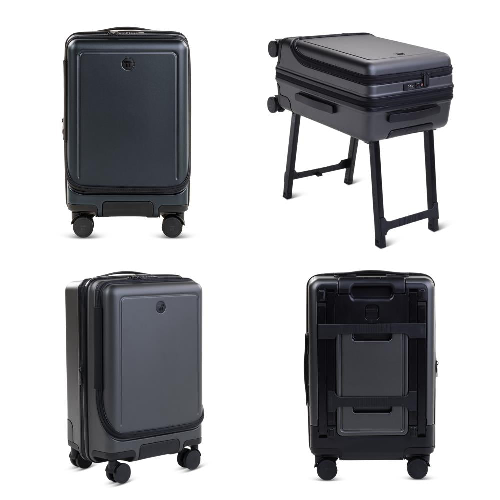 Named Best Luxury Travel Product of 2024 by the Travel Goods Association, this is the carry-on with a built-in luggage rack that supports up to 50 lbs. Ideal for use in a hotel room or at the airport while waiting for a flight, it supports its own weight and can also be used as a work surface or tray table, holding a laptop, beverage, or book. Made from 100% resin, the hard-shell exterior withstands the rigors of modern-day travel without cracking or denting. A second zipper provides nearly 2 1/2" of expansion, increasing the overall volume. The generous interior is lined with rugged nylon and built-in dividers keep travel items in place. With four wheels that swivel 360°, two padded carrying handles, telescoping aluminum handle, and integrated combination lock. Ice, Ivory, Midnight, or Graphite. 21 1/2" H x 14" W x 9 1/2" D. (9 lbs.)