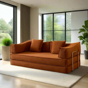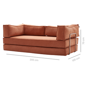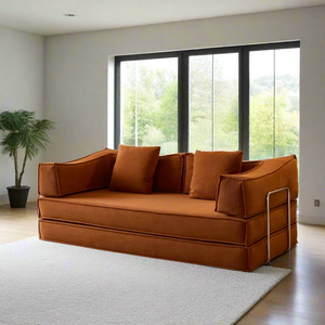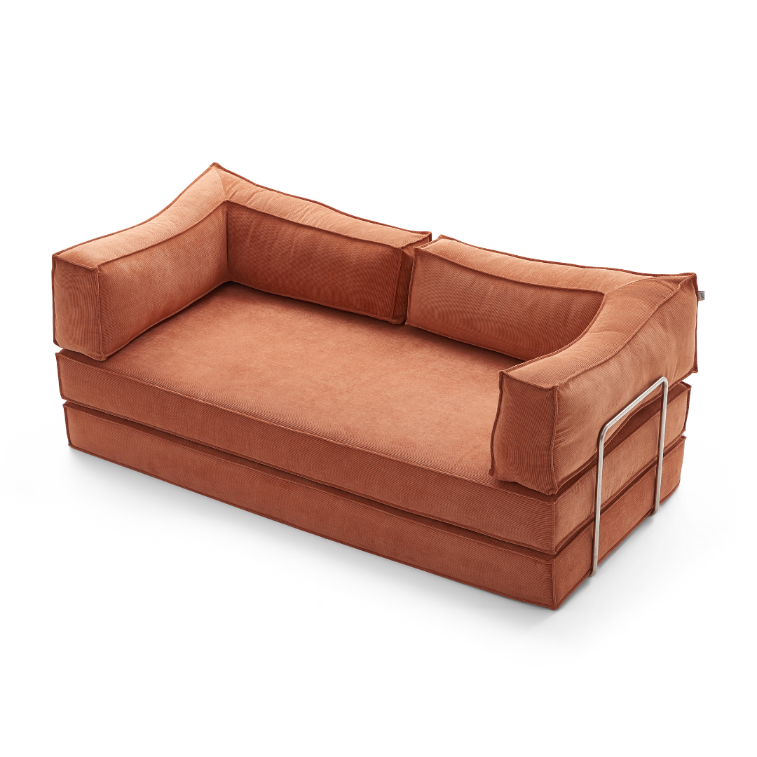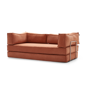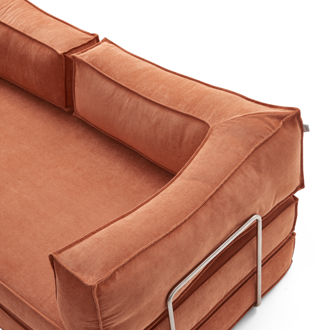 Discover the comfort of our new sofa. designed with a focus on cosy lounging and stylish relaxation. The cushions provide a pillowy softness you'll sink right into. Wrapped in premium corduroy fabric. this sofa combines classic style with robust durability. making it a standout piece in any room. The chrome-plated iron bars add a sleek detail and reinforce the frame for added stability.